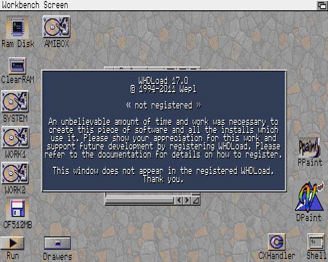 Qualche anno fà però girovagando in rete mi sono imbattuto in questo famigerato WHDLoad, un sofware che permette di avere i giochi avviabili da hard disk in maniera del tutto simile alle installazioni dei giochi per pc.