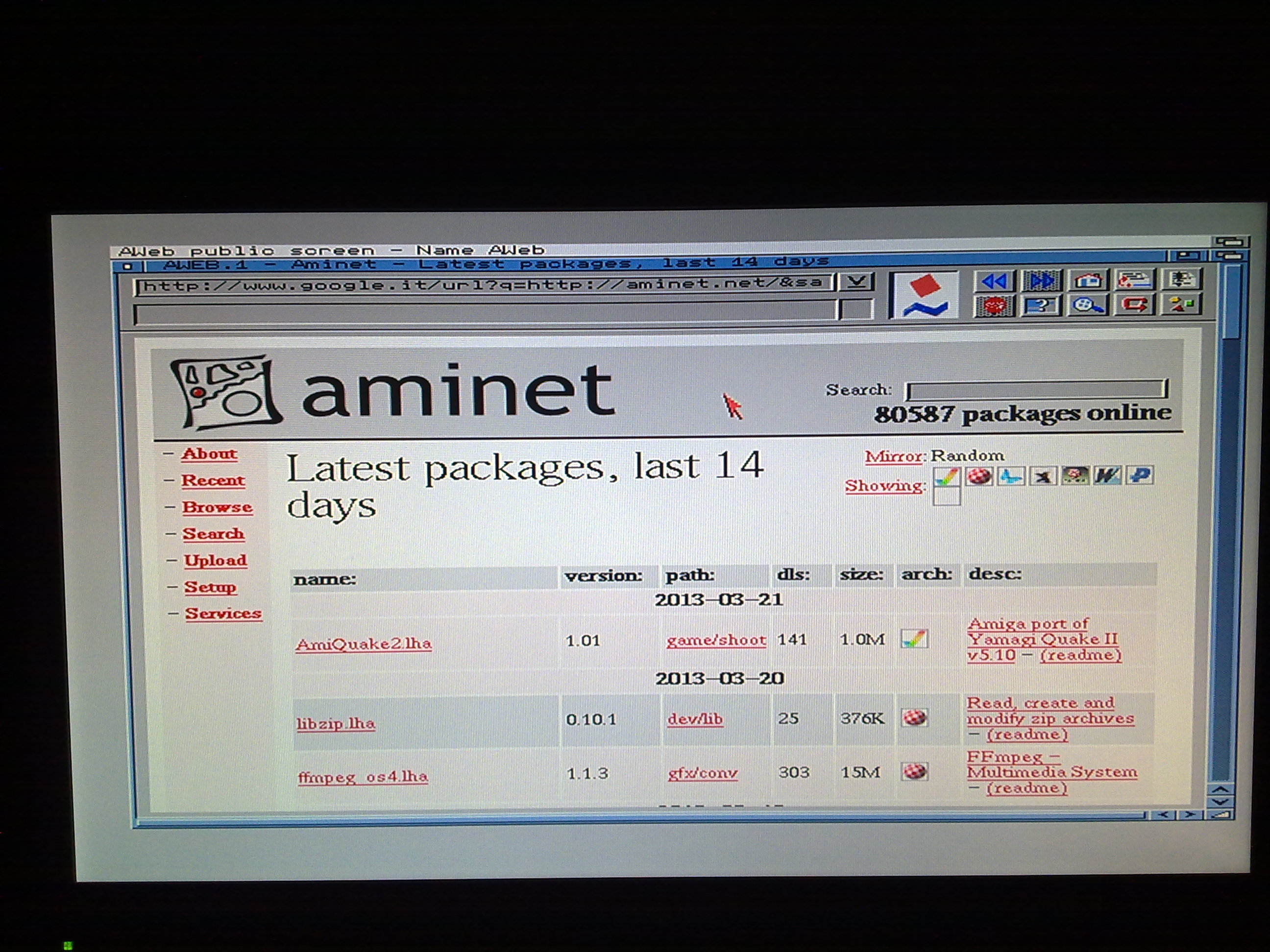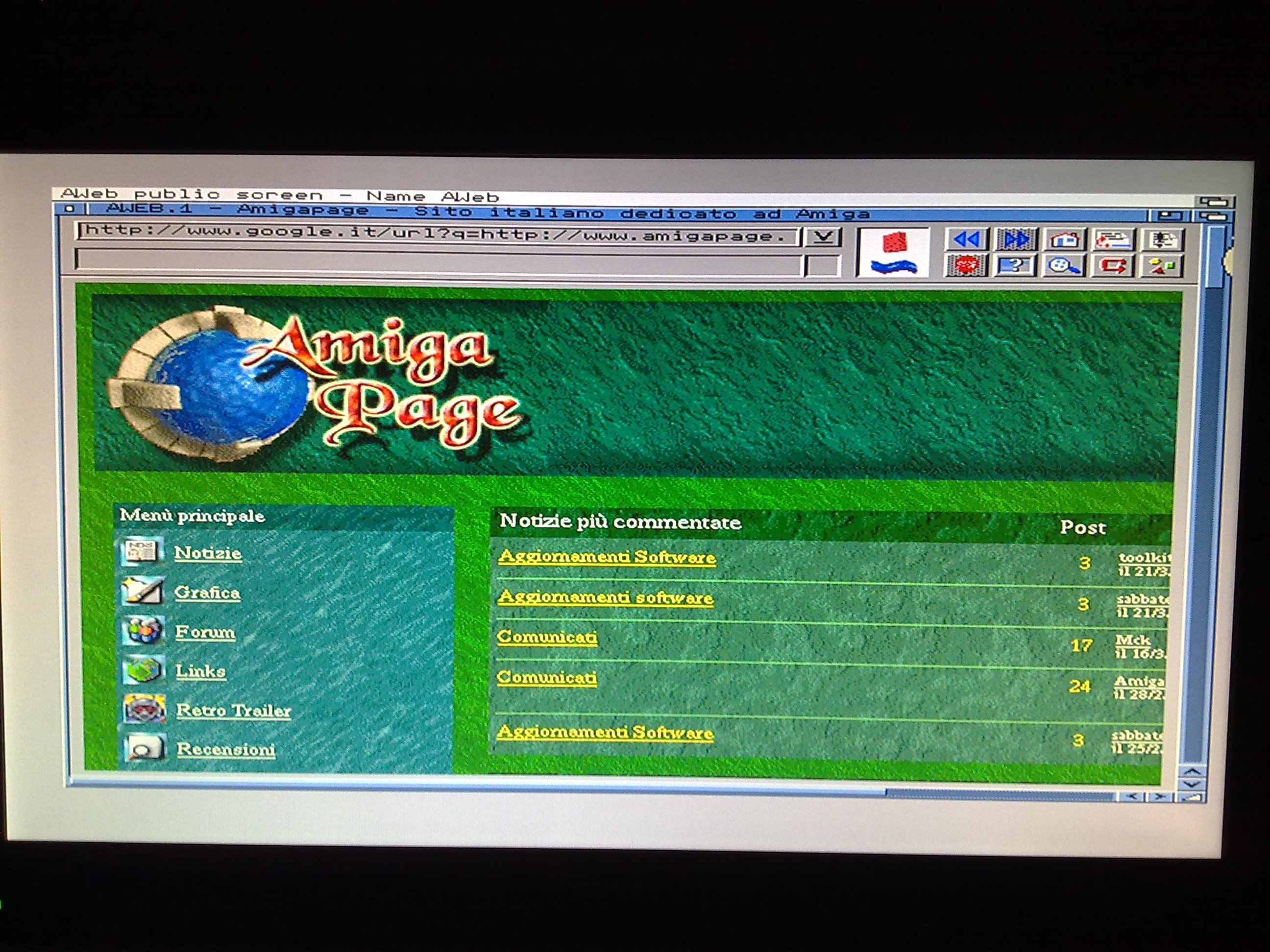 - Un Browser internet per Amiga, e qui abbiamo la nota dolente in quanto tali software per Amiga sono vetusti e poco compatibili con il web odierno, io ho optato per Ibrowse però in versione demo limita l’ accesso a soli 30 minuti, oppure esiste Aweb che é free ma molto limitato.